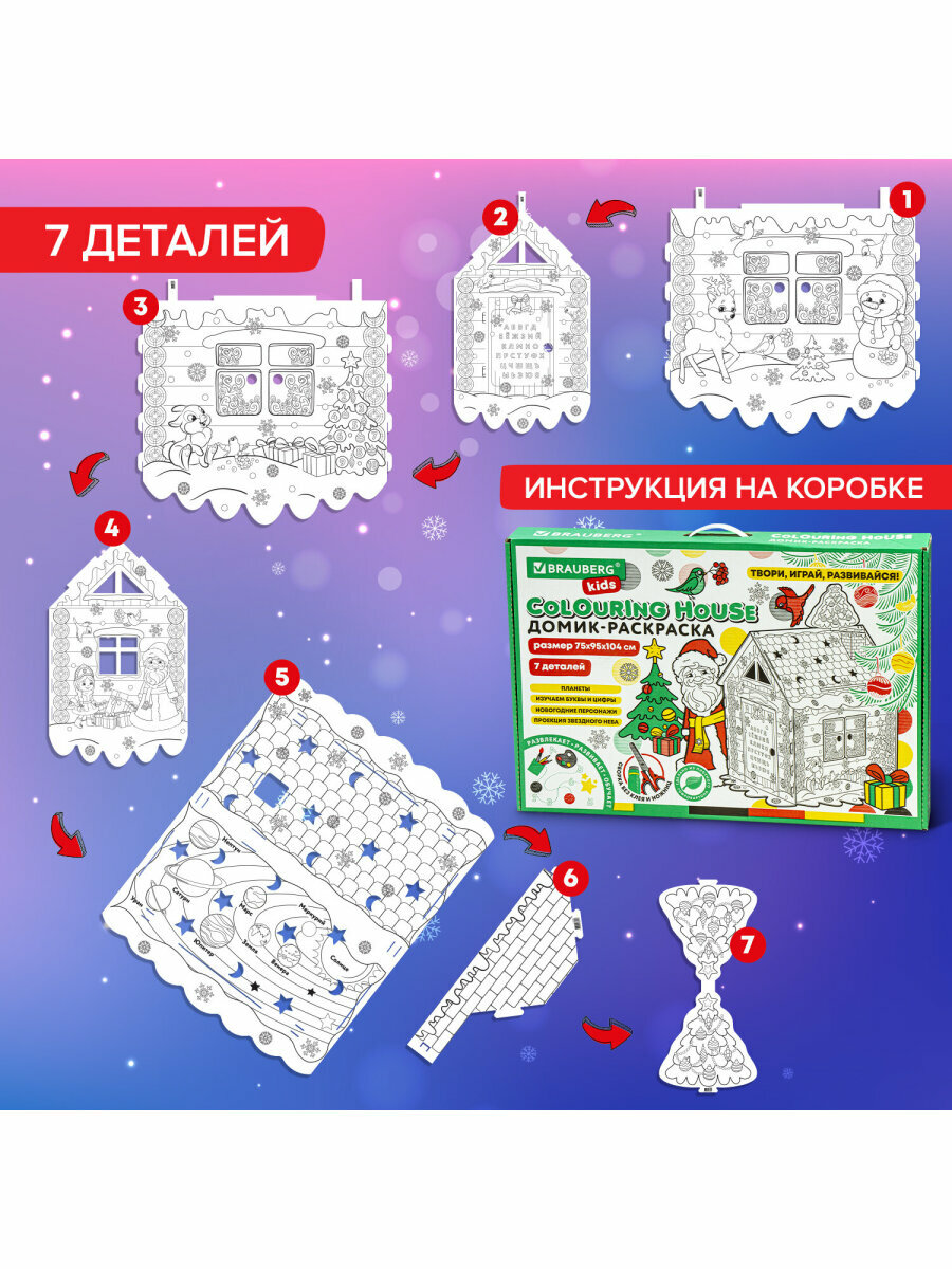 Купить Картонный домик раскраска, игровой развивающий подарок детский «Новогодний», высота 130 см, BRAUBERG kids, 880365 с доставкой по всей России. Картонный домик раскраска, игровой развивающий подарок детский «Новогодний», высота 130 см, BRAUBERG kids, 880365: сравнение цен, характеристики, фото, актуальное наличие и цены.