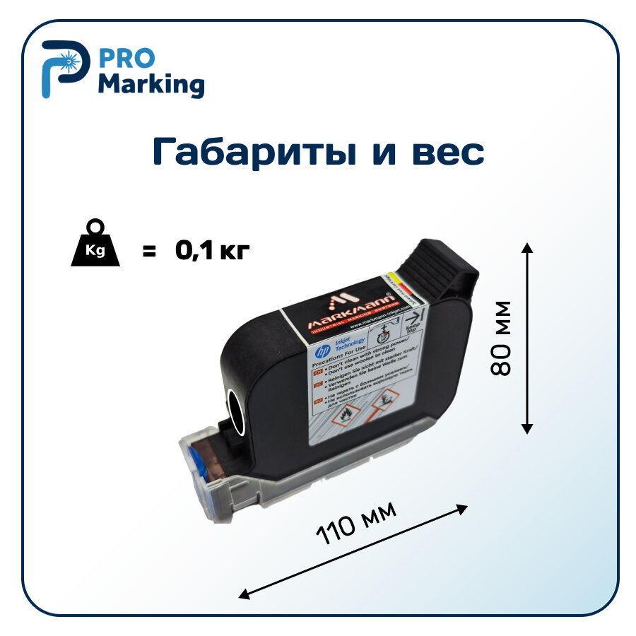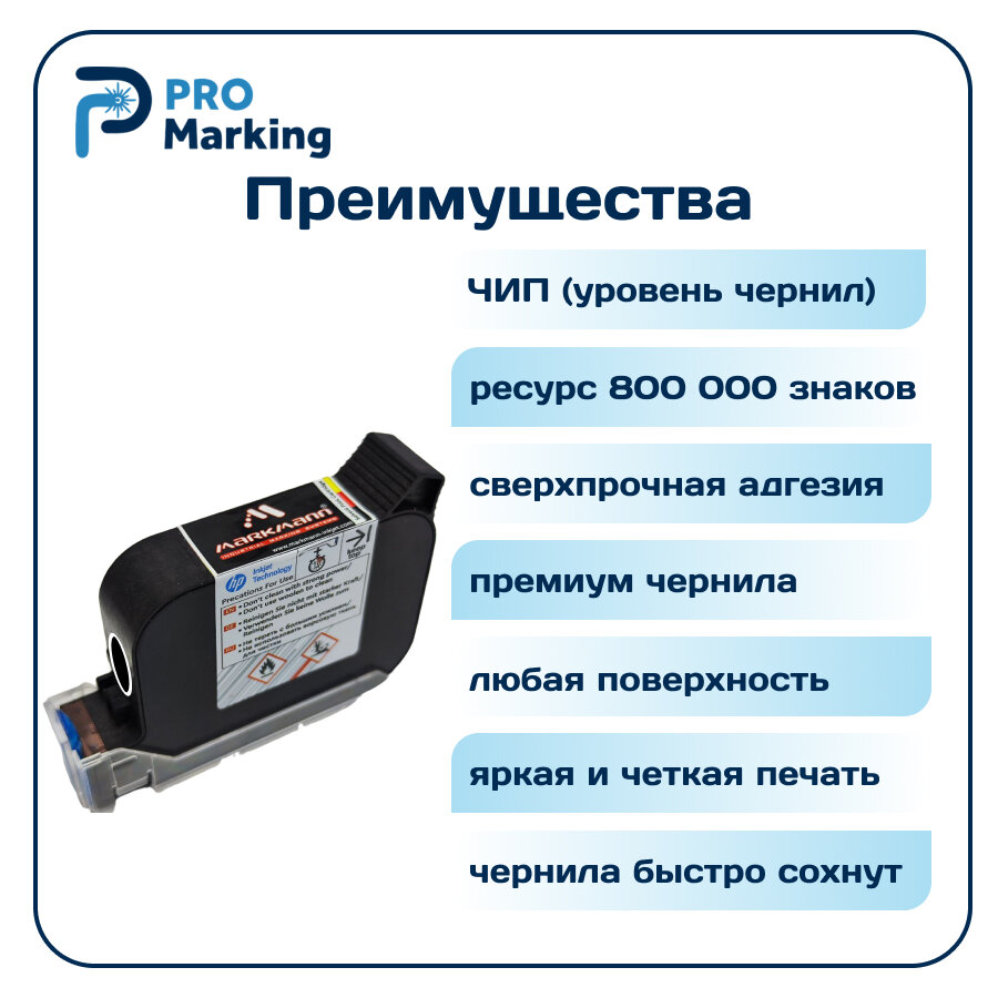 Емкость картриджа составляет 42 миллилитра, что обеспечивает длительную работу маркиратора без необходимости частой замены. Ресурс картриджа - 800 000 символов, что делает его идеальным выбором для использования в различных областях, таких как маркировка товаров, упаковки, этикеток и т.д.