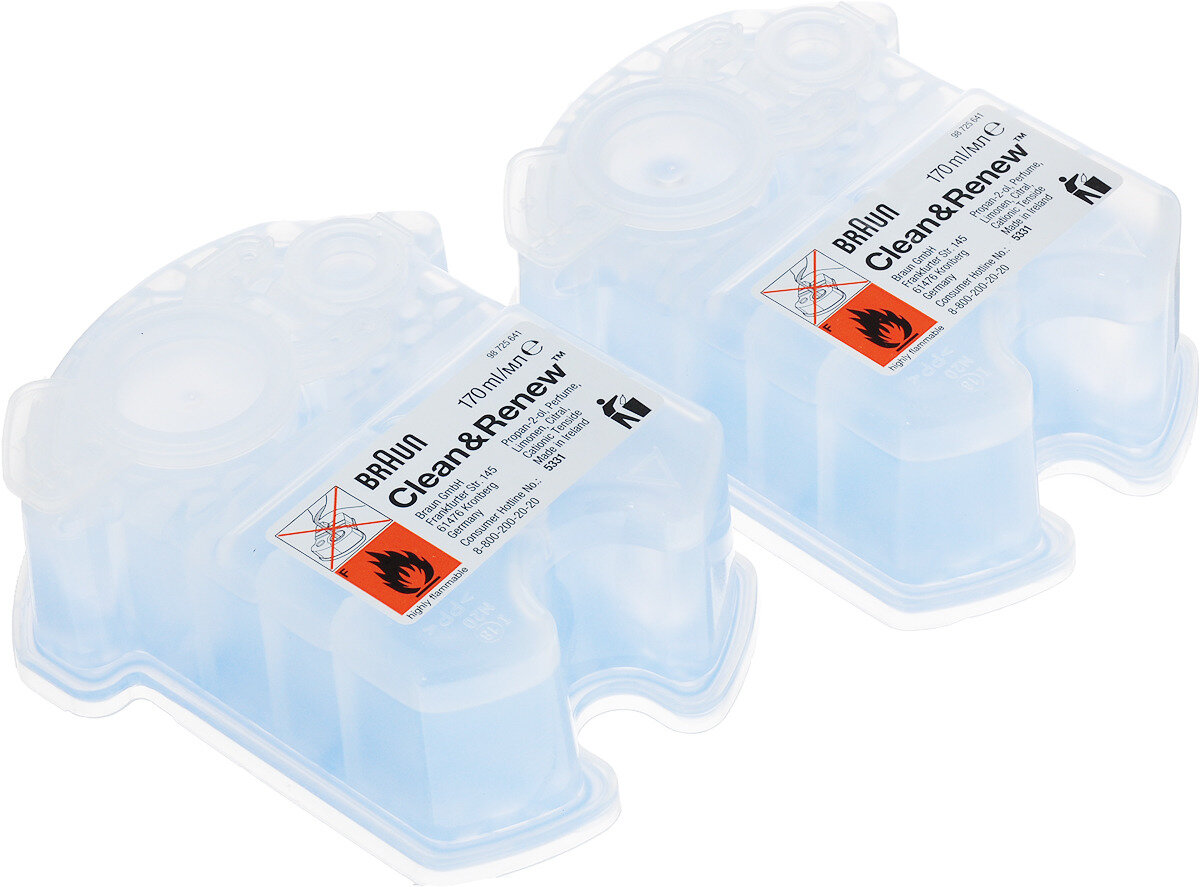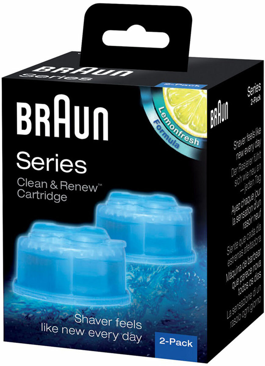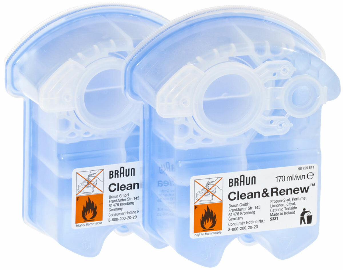 Сменные картриджи с чистящей жидкостью Braun CCR2 Clean & Renew используются в зарядно-чистящих устройствах бритв Braun. Специально разработанный и запатентованный состав очистит сетку и нож вашей бритвы от волос, кожного сала и остатков кожи, уничтожит всех микробов и бактерий, придаст свежий лимонный аромат. Также формула этой жидкости смазывает бреющую сетку и нож, для оптимальной эффективности бритья. Картриджи для очистки гарантируют максимальную дезинфекцию и позволяют продлить срок службы прибора.