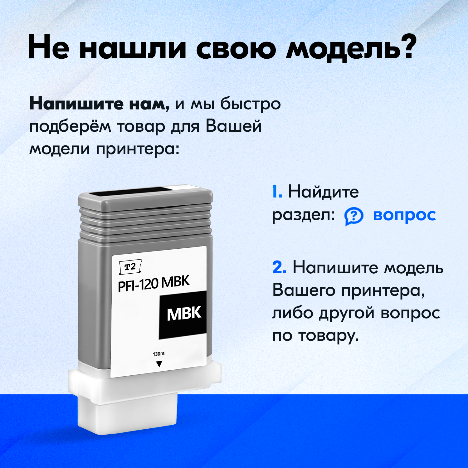 Ресурс картриджа: 130 мл Цвет: Матовый Черный (Matte Black) Предназначен для принтеров с картриджами: Canon PFI-120MBK Картридж на принтер Canon
