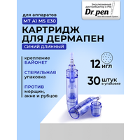 Картридж Dr.Pen на 12 игл для дермапен, синий длинный, 30 шт