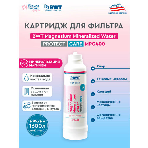 Картридж для фильтра мойку BWT AQA drink Magnesium Mineralized Water Protect Care MPC400 обеспечит Вас чистой, полезной и вкусной питьевой водой, обогащенной магнием, прямо из крана на Вашей кухне.