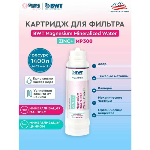 Картридж для фильтра мойку BWT AQA drink Magnesium Mineralized Water Protect Zn+MP300 обеспечит Вас чистой, полезной и вкусной питьевой водой, обогащенной магнием и цинком, прямо из крана на Вашей кухне.