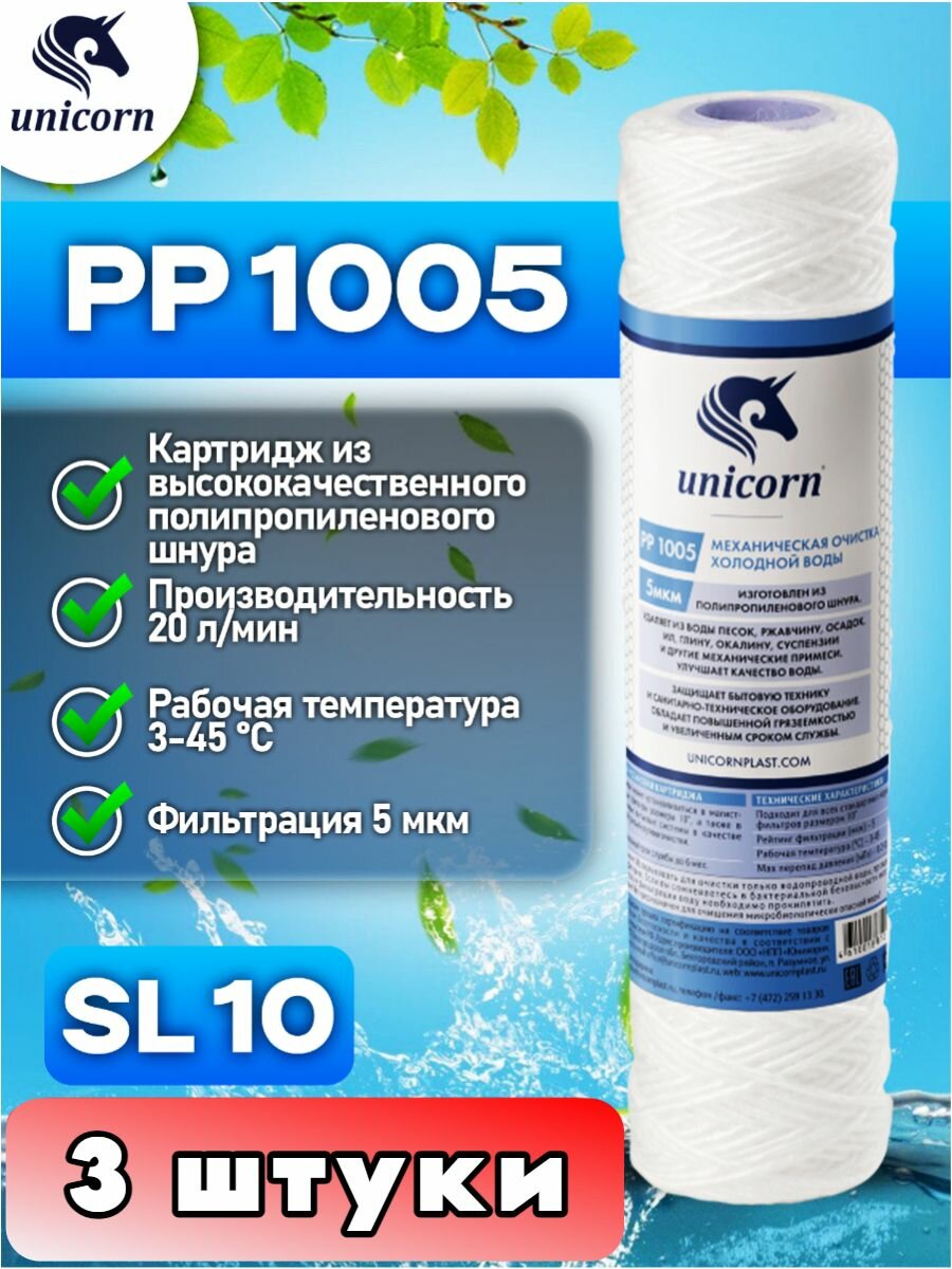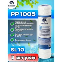 Картридж для фильтра воды механическая очистка из полипропиленового волокна для холодной воды типоразмер 10″SL (Slim Line) фильтрация 5 микрон Unicorn PP1005 3 штуки: сравнение цен, характеристики, фото, актуальное наличие и цены.