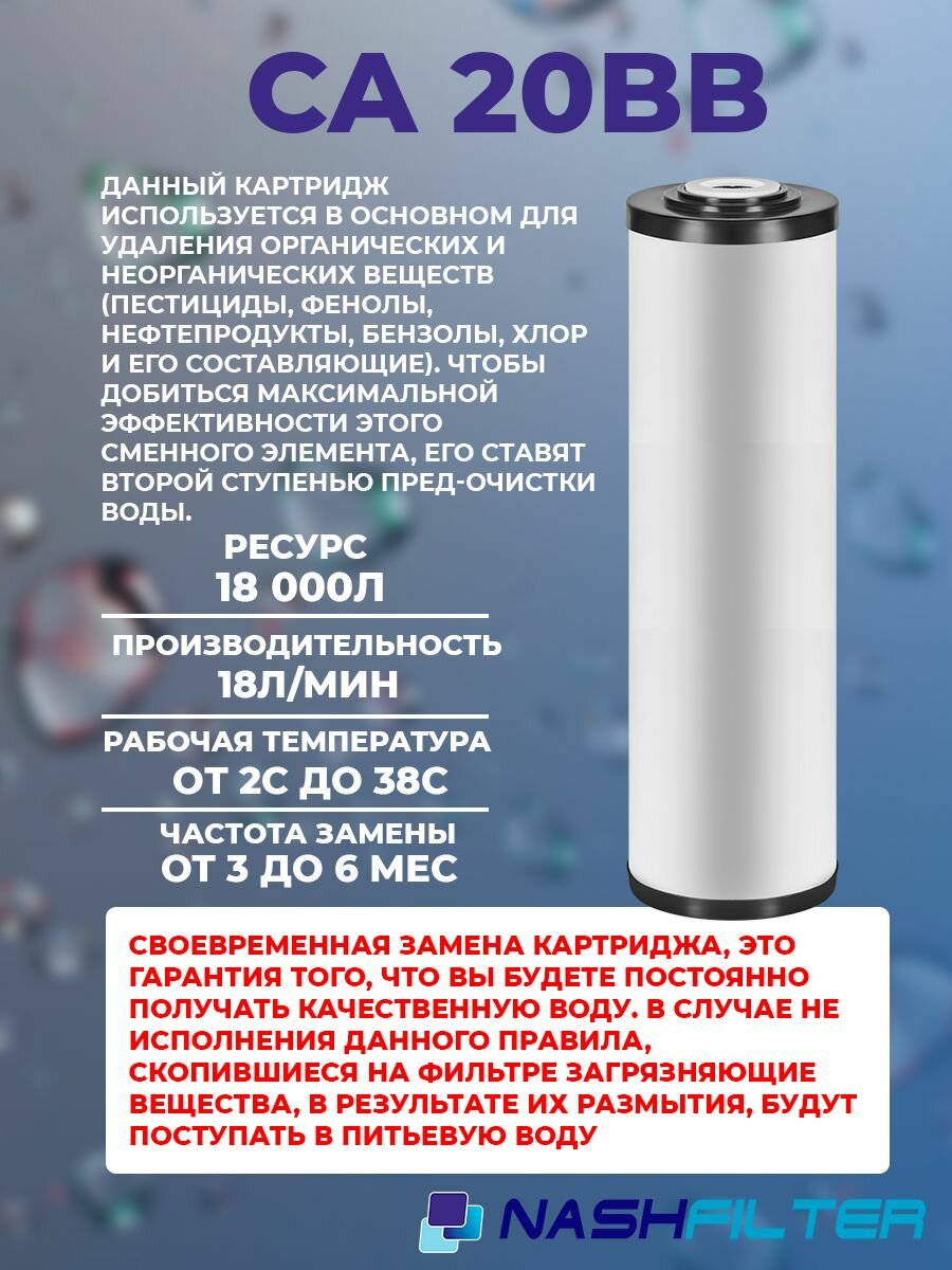 Купить Картридж для фильтра воды с гранулированным углём CA 20BB с доставкой по всей России. Картридж для фильтра воды с гранулированным углём CA 20BB: сравнение цен, характеристики, фото, актуальное наличие и цены.
