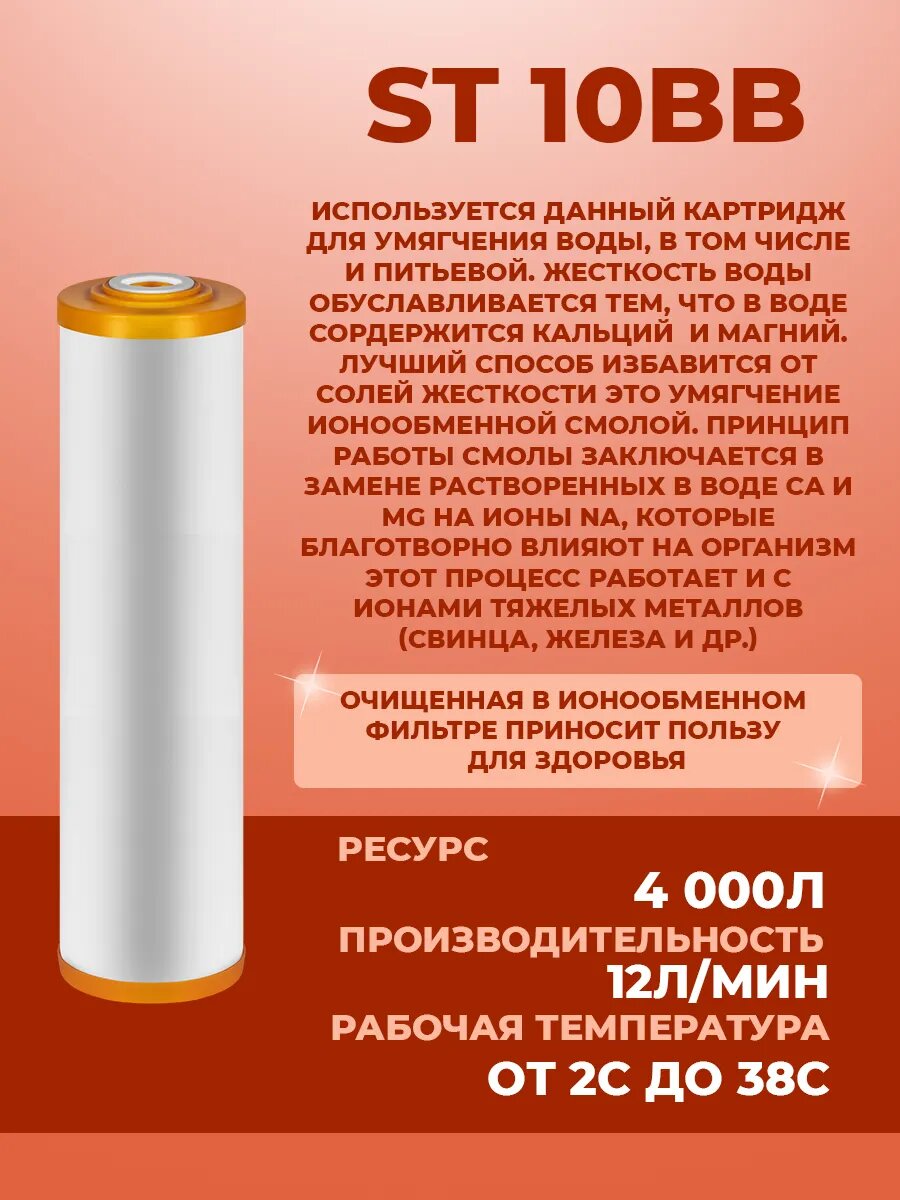 Купить Картридж для фильтра воды с ионообменной смолой ST 10ВВ с доставкой по всей России. Картридж для фильтра воды с ионообменной смолой ST 10ВВ: сравнение цен, характеристики, фото, актуальное наличие и цены.