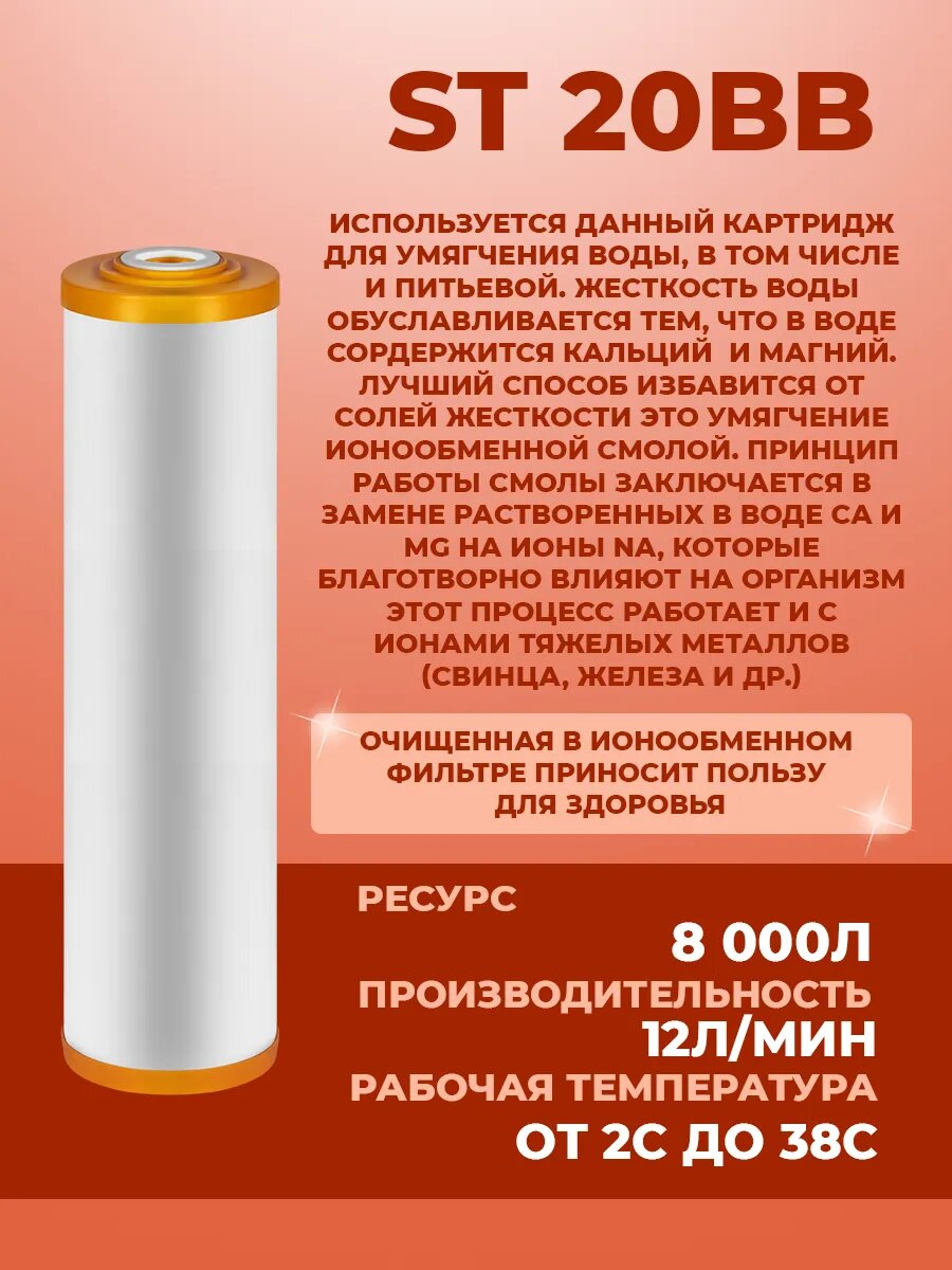 Купить Картридж для фильтра воды с ионообменной смолой ST 20BB с доставкой по всей России. Картридж для фильтра воды с ионообменной смолой ST 20BB: сравнение цен, характеристики, фото, актуальное наличие и цены.