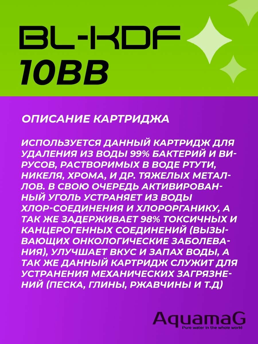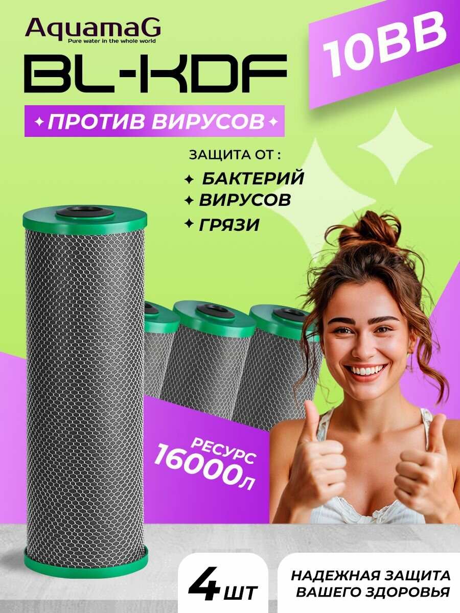 Картридж для фильтра воды с прессованным бактерицидным углём BL-KDF 10 BB 4 шт: сравнение цен, характеристики, фото, актуальное наличие и цены.