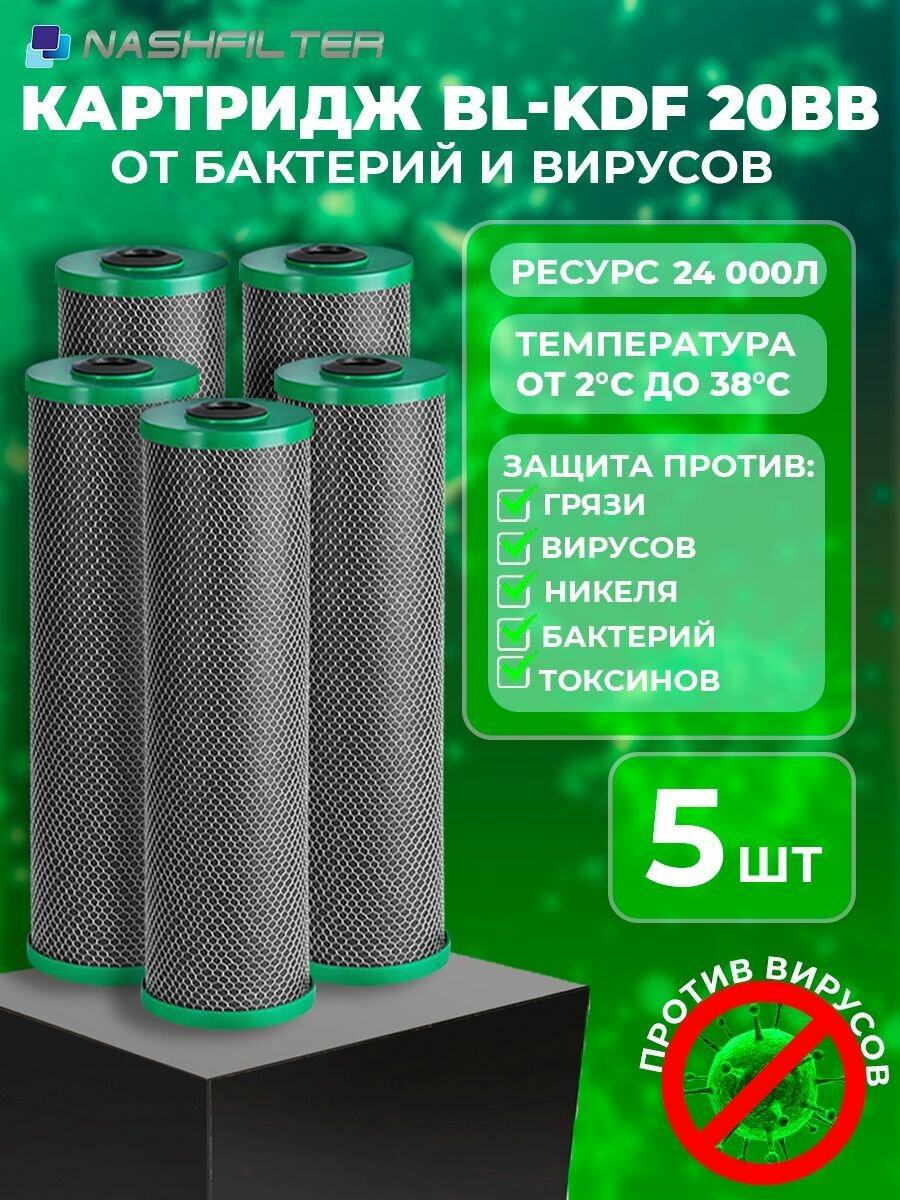 Купить Картридж для фильтра воды с прессованным бактерицидным углём BL-KDF 20BB 5 шт с доставкой по всей России.