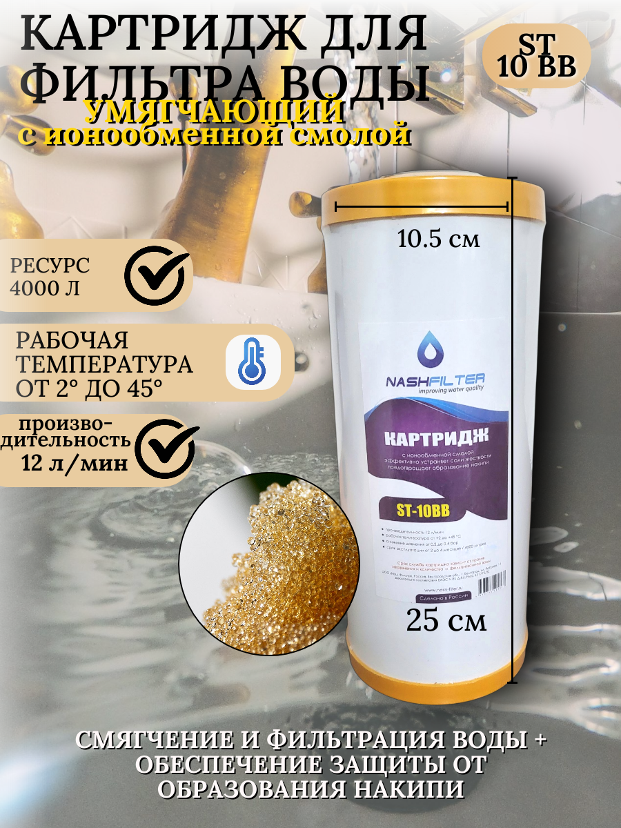 Купить Картридж для фильтра воды умягчающий с ионообменной смолой ST 10BB с доставкой по всей России. Картридж для фильтра воды умягчающий с ионообменной смолой ST 10BB: сравнение цен, характеристики, фото, актуальное наличие и цены.