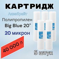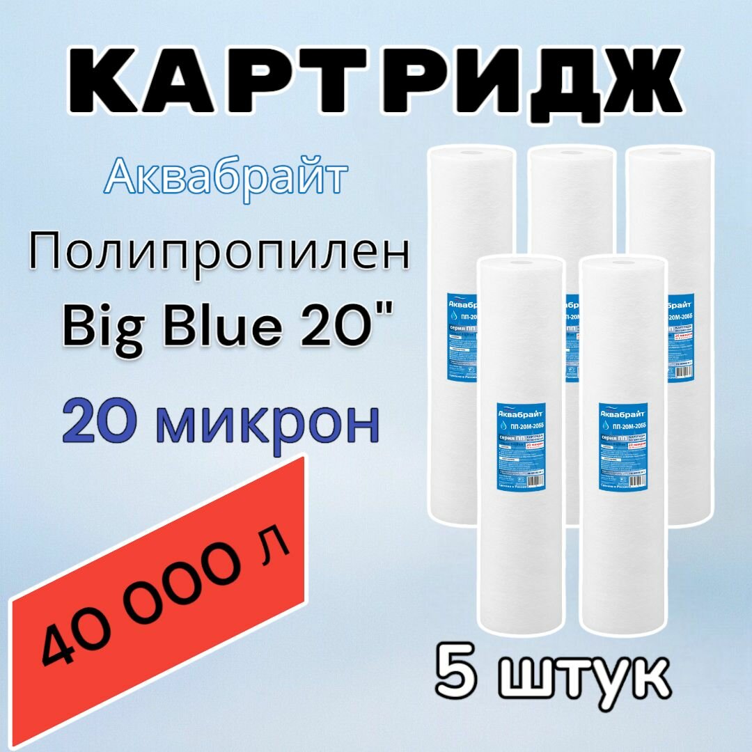 Картридж для механической очистки воды полипропиленовый аквабрайт ПП-20М-20ББ (5 шт.), для фильтра, Big Blue 20″, 20 микрон
