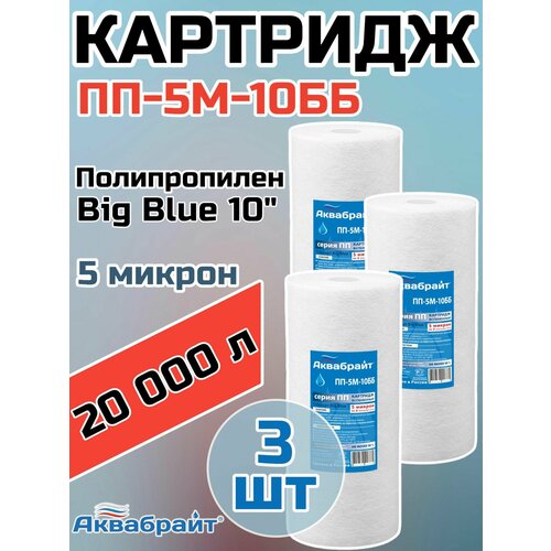 Картридж для механической очистки воды полипропиленовый аквабрайт ПП-5М-10ББ (3 шт.), для фильтра, Big Blue 10, 5 микрон: сравнение цен, характеристики, фото, актуальное наличие и цены.