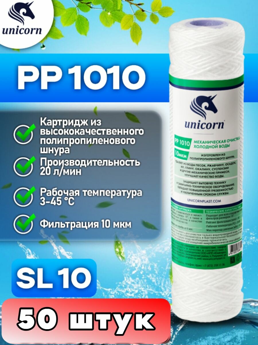 Купить Картридж для механической очистки воды Unicorn PP-1010, 10 дюймов, 50 штук (коробка) с доставкой по всей России.