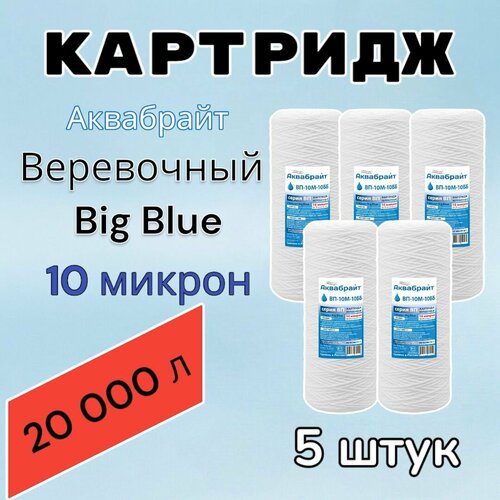 Картридж для механической очистки воды веревочный аквабрайт ВП-10М-10ББ (5 шт.), для фильтра, Big Blue 10, 10 микрон: сравнение цен, характеристики, фото, актуальное наличие и цены.