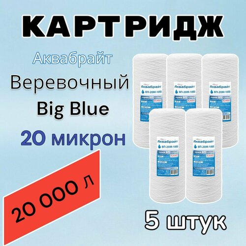 Картридж для механической очистки воды веревочный аквабрайт ВП-20М-10ББ (5 шт.), для фильтра, Big Blue 10, 20 микрон: сравнение цен, характеристики, фото, актуальное наличие и цены.