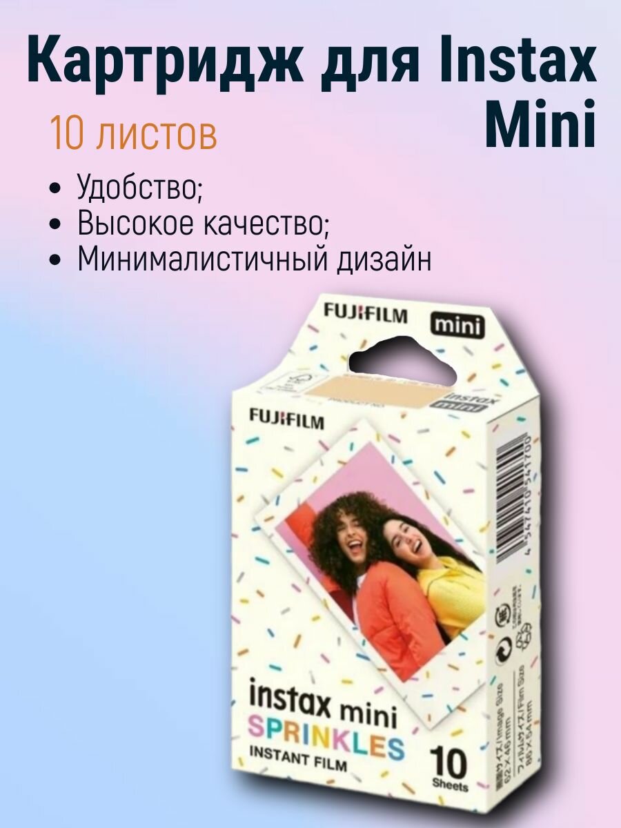 Картридж/Фотобумага Fuji Fujifilm,sprinkles, 10 листов, для Instax Mini, для мгновенных снимков Instax Mini 12: сравнение цен, характеристики, фото, актуальное наличие и цены.