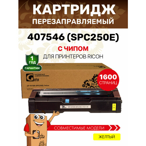 Купить Картридж GalaPrint 407546 (SPC250E) для Ricoh Aficio SPC250/SPC260/SPC261 1600 копий лазерный, совместимый, цвет желтый с доставкой по всей России. Картридж GalaPrint 407546 (SPC250E) для Ricoh Aficio SPC250/SPC260/SPC261 1600 копий лазерный, совместимый, цвет желтый: сравнение цен, характеристики, фото, актуальное наличие и цены.