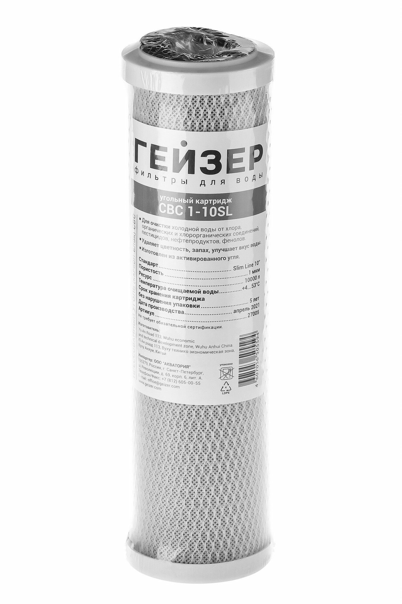 Картридж СБС Гейзер отличается превосходной сорбционной способностью, гораздо лучшей, чем у фильтроэлементов с гранулированным углем.