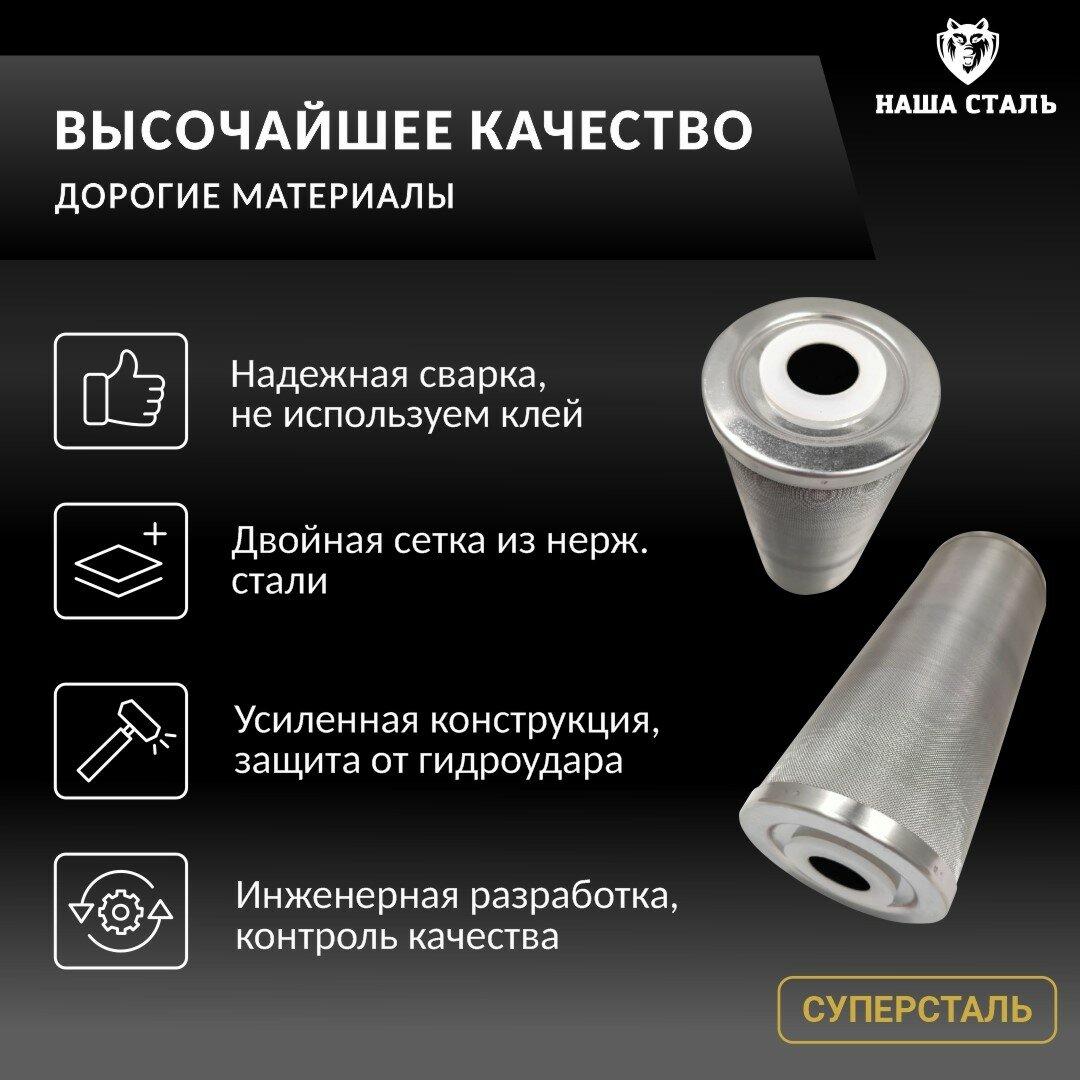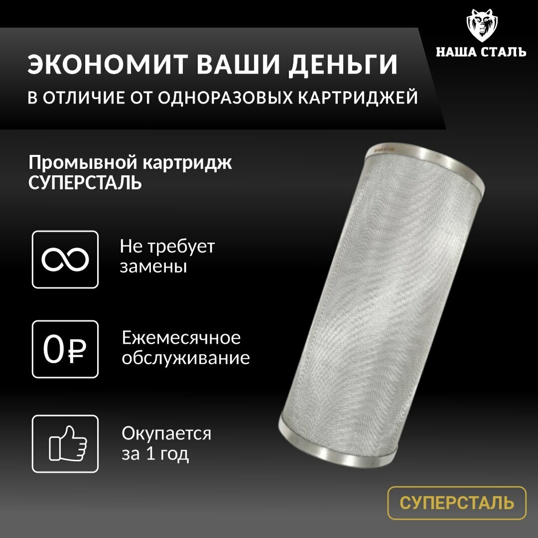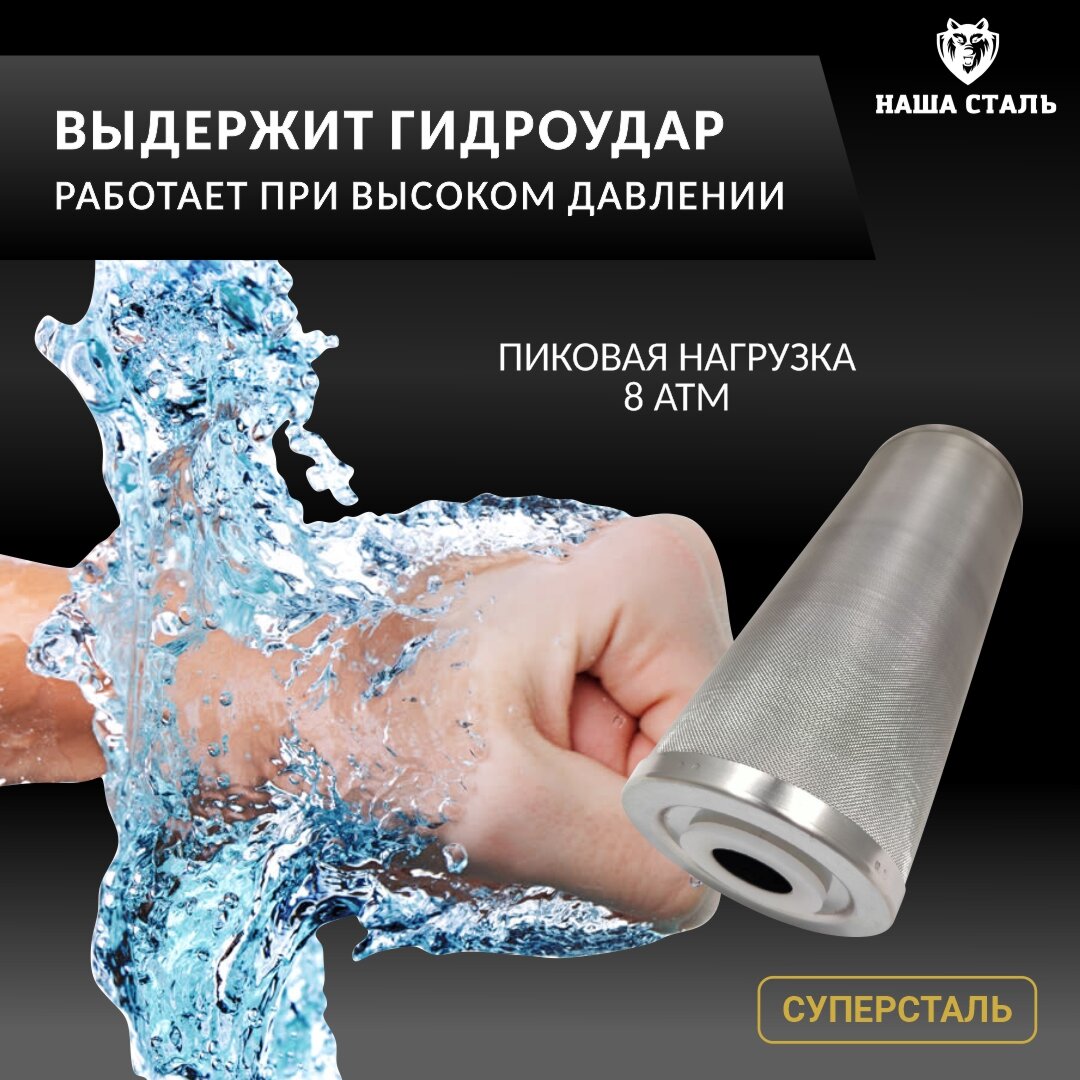 Благодаря надежной конструкции сетчатый стальной картридж для воды обладает долгим сроком службы и не требует постоянной замены