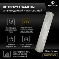 Промывной сетчатый картридж «суперсталь» стандарта BB20 (50 микрон) из нержавеющей стали для фильтра грубой механической очистки воды аналогичного стандарта Big Blue 20