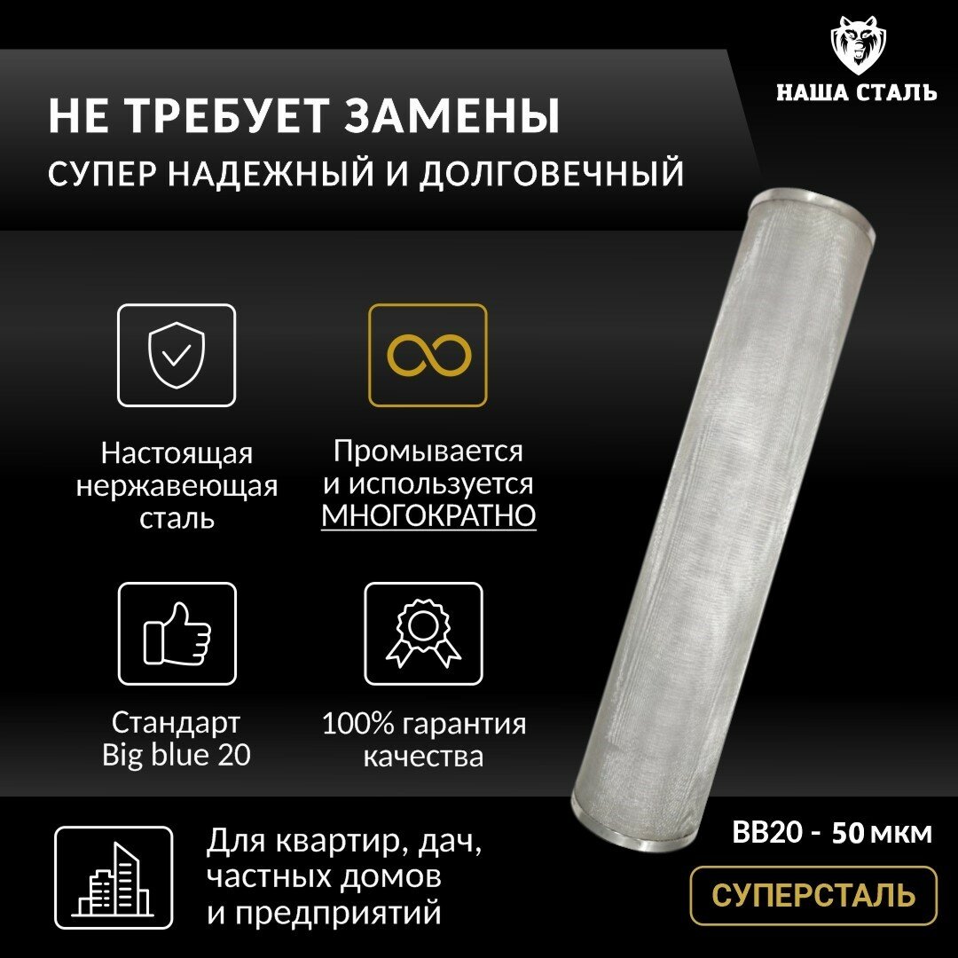 Купить Картридж грубой механической очистки воды промывной BB20 — 50 мкм «Суперсталь» из нержавеющей стали с доставкой по всей России. Картридж грубой механической очистки воды промывной BB20 — 50 мкм «Суперсталь» из нержавеющей стали: сравнение цен, характеристики, фото, актуальное наличие и цены.