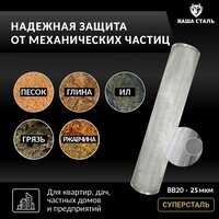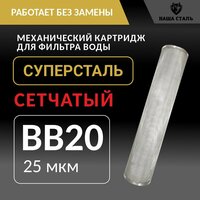 Промывной сетчатый картридж «суперсталь» стандарта BB20 (25 микрон) из нержавеющей стали для фильтра грубой механической очистки воды аналогичного стандарта Big Blue 20