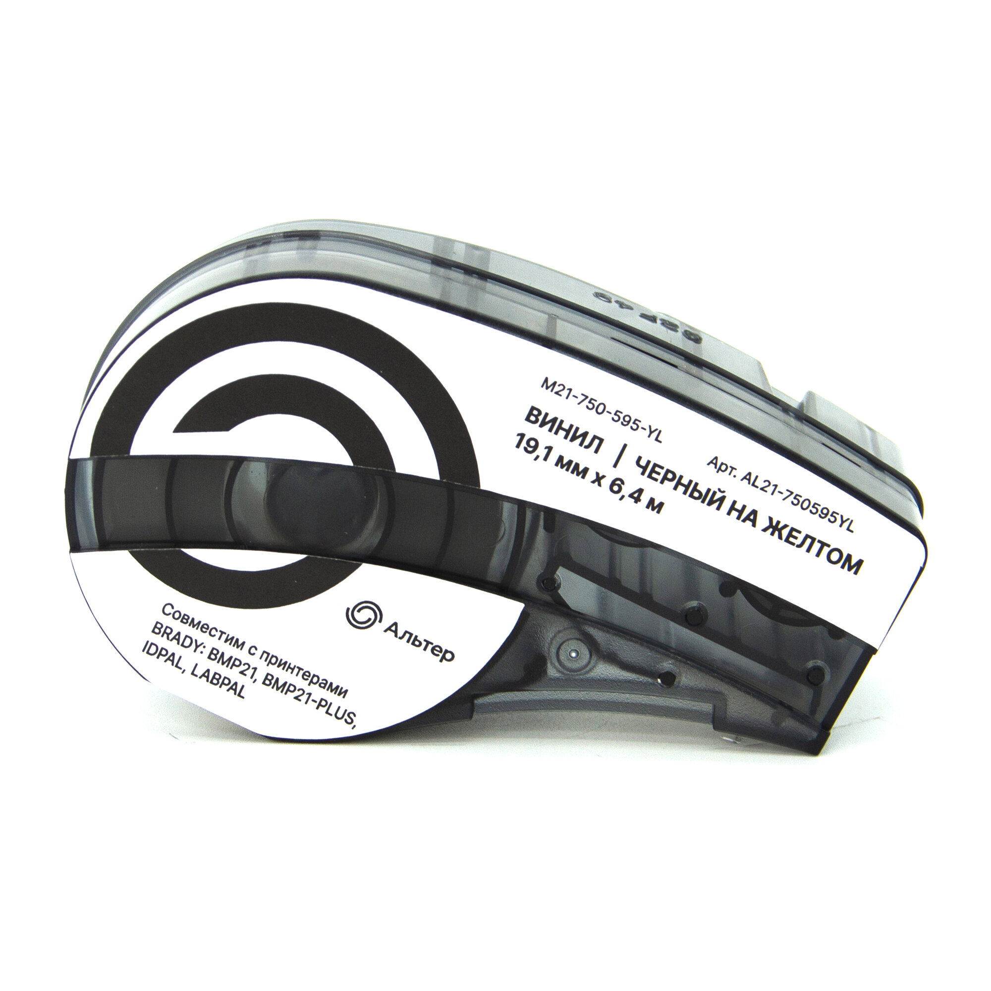 Картридж с лентой из винила 19,1 мм х 6,4 м, печать черным на желтом