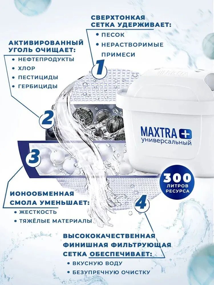 - Фильтрация: Обеспечивает фильтрацию до 150 литров воды каждые 4 недели.