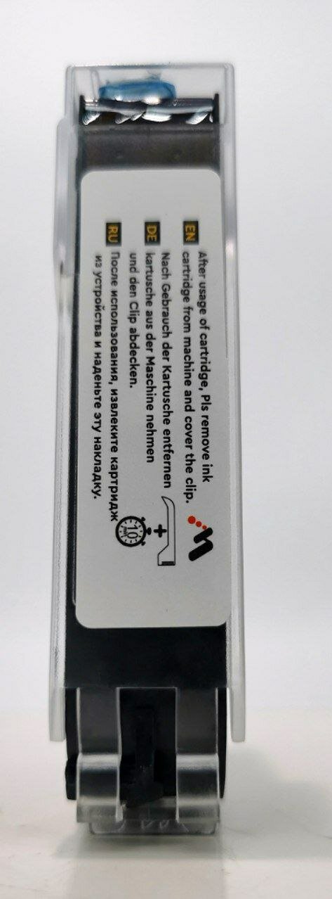 Емкость картриджа составляет 65 мл, что обеспечивает длительную работу маркиратора без необходимости частой замены. Ресурс картриджа - 800 000 символов, что делает его идеальным выбором для использования в различных областях, таких как маркировка товаров, упаковки, этикеток и т.д.