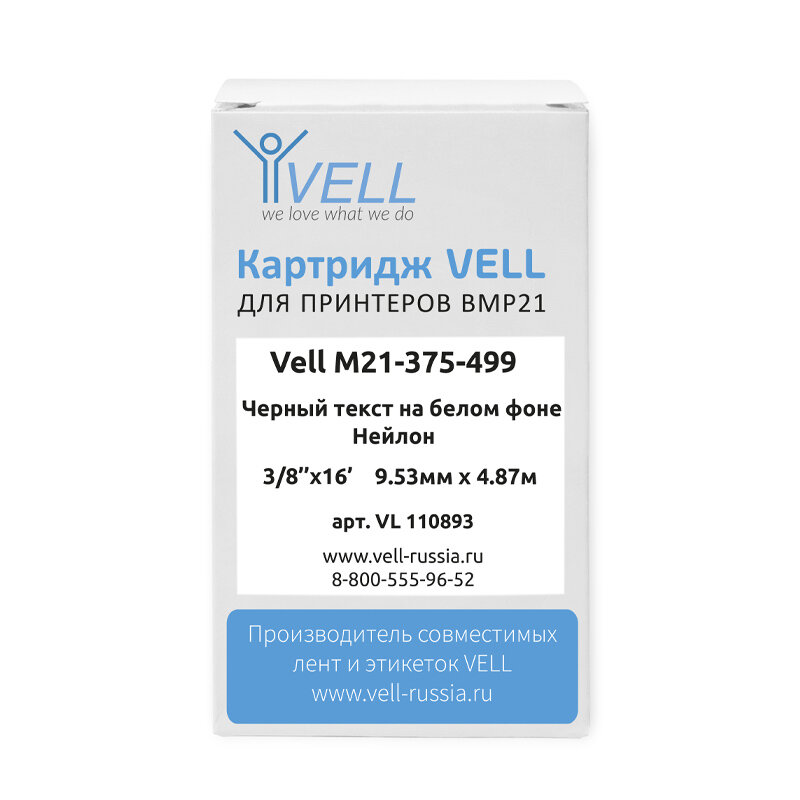 Картридж VL110893, нейлон, 9.53 мм*4.87 м, черный на белом {Vell M21-375-499} (1 шт): сравнение цен, характеристики, фото, актуальное наличие и цены.