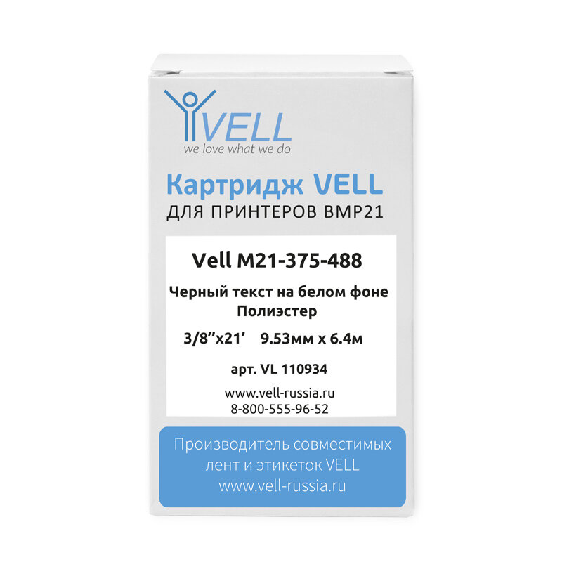Картридж VL110934, полиэстер, 9.53 мм*6.4 м, черный на белом {Vell M21-375-488} (1 шт): сравнение цен, характеристики, фото, актуальное наличие и цены.