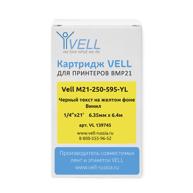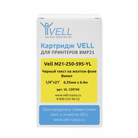 Картридж VL139745, винил, 6.35 мм*6.4 м, черный на желтом {Vell M21-250-595-YL} (1 шт): сравнение цен, характеристики, фото, актуальное наличие и цены.