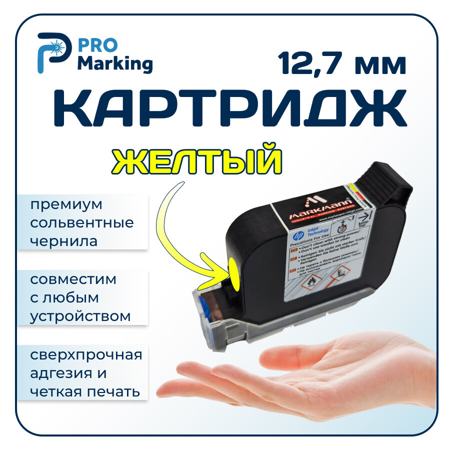 Картридж высококачественный продукт от производителя MarkMann. Заправлен сольвентными чернилами желтого цвета. Подходит для ручного маркиратора типоразмера 2588, 2588+. Чернила водостойкие - не смываются водой, обладают сверхпрочной адгезией, что обеспечивает четкую и яркую печать на любой поверхности. Высота печати картриджа - 12,7 мм, а разрешение - 600 DPI. Картридж можно перезаправлять, что позволяет значительно сэкономить. Сольвентные чернила картриджа MarkMann быстро сохнут. В картридже используется технология HP, что гарантирует высокое качество и долговечность печати. Емкость картриджа составляет 42 миллилитра, ресурс картриджа - 800 000 символов, благодаря чему широко используется в различных областях, таких как маркировка товаров, упаковки, этикеток и т. д. Картридж сольвентный для датера MarkMann обеспечивает высокую производительность и долговечность, а также возможность использования на любой поверхности, что делает его универсальным и удобным в использовании.
