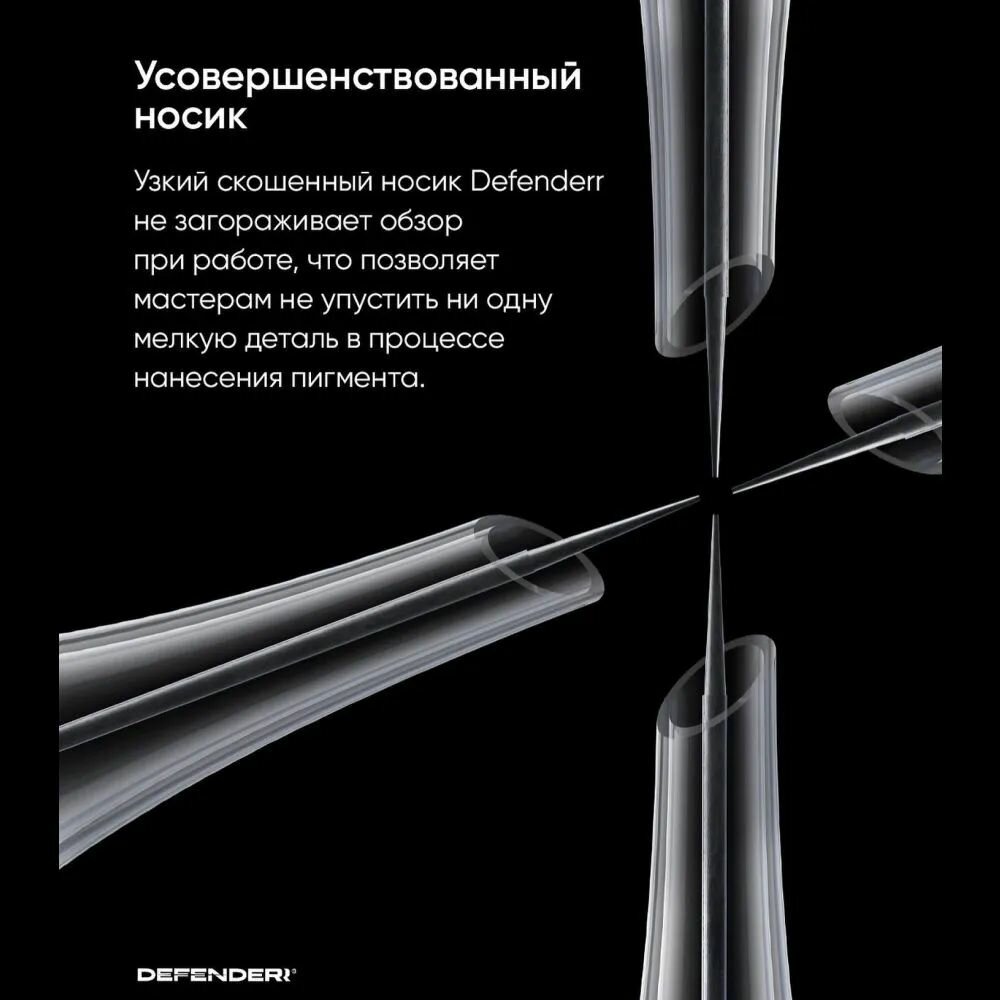 Defender Nano Systems спроектированы для самых требовательных мастеров перманентного макияжа. Картриджи используют облегченную мембрану для предотвращения попадания пигмента в машинку и улучшения возврата иглы. Стерилизовано с использованием газа окись этилена.