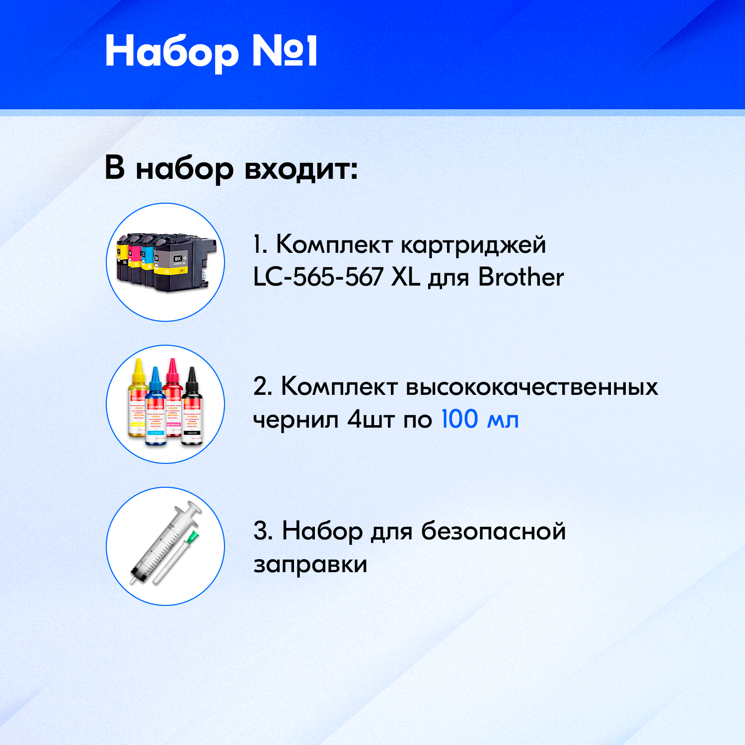 Картриджи для Brother LC565XLC, LC565XLM, LC565XLY, LC567XLBK - это оптимальное соотношение цены и качества. Картриджи идеально подходят для принтеров Brother, обеспечивая неизменно высокое качество, надежную работу устройства и минимальную стоимость каждого отпечатка. Данные картриджи созданы таким образом, что они расходуются гораздо медленнее, чем обычные - благодаря большому объему чернил. В то же время гарантируется превосходное качество печати. Печать всегда получается четкой, с отличной цветопередачей и без лишних линий и полос на листе. Мы гарантируем 100% совместимость, не подойдет - вернем деньги.