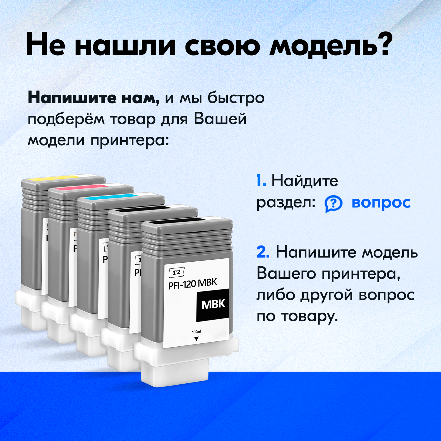 Картриджи для Canon PFI-120MBK, PFI-120BK, PFI-120C, PFI-120M, PFI-120Y - это оптимальное соотношение цены и качества. Картриджи идеально подходят для принтеров Canon , обеспечивая неизменно высокое качество, надежную работу устройства и минимальную стоимость каждого отпечатка. Данные картриджи созданы таким образом, что они расходуются гораздо медленнее, чем обычные - благодаря большому объему чернил. В то же время гарантируется превосходное качество печати. Печать всегда получается четкой, с отличной цветопередачей и без лишних линий и полос на листе. Мы гарантируем 100% совместимость, не подойдет - вернем деньги.