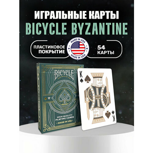 Официальная колода Bicycle Byzantine выпущена The United States Playing Card Company в коллекционной серии, посвященной историческому искусству. Дизайн колоды вдохновлен великолепием Византийской империи с ее уникальной архитектурой, мозаиками и религиозными символами. Роскошная рубашка карт выполнена в глубокой зелено-золотой гамме, с детализированными узорами, напоминающими византийские фрески и орнаменты.