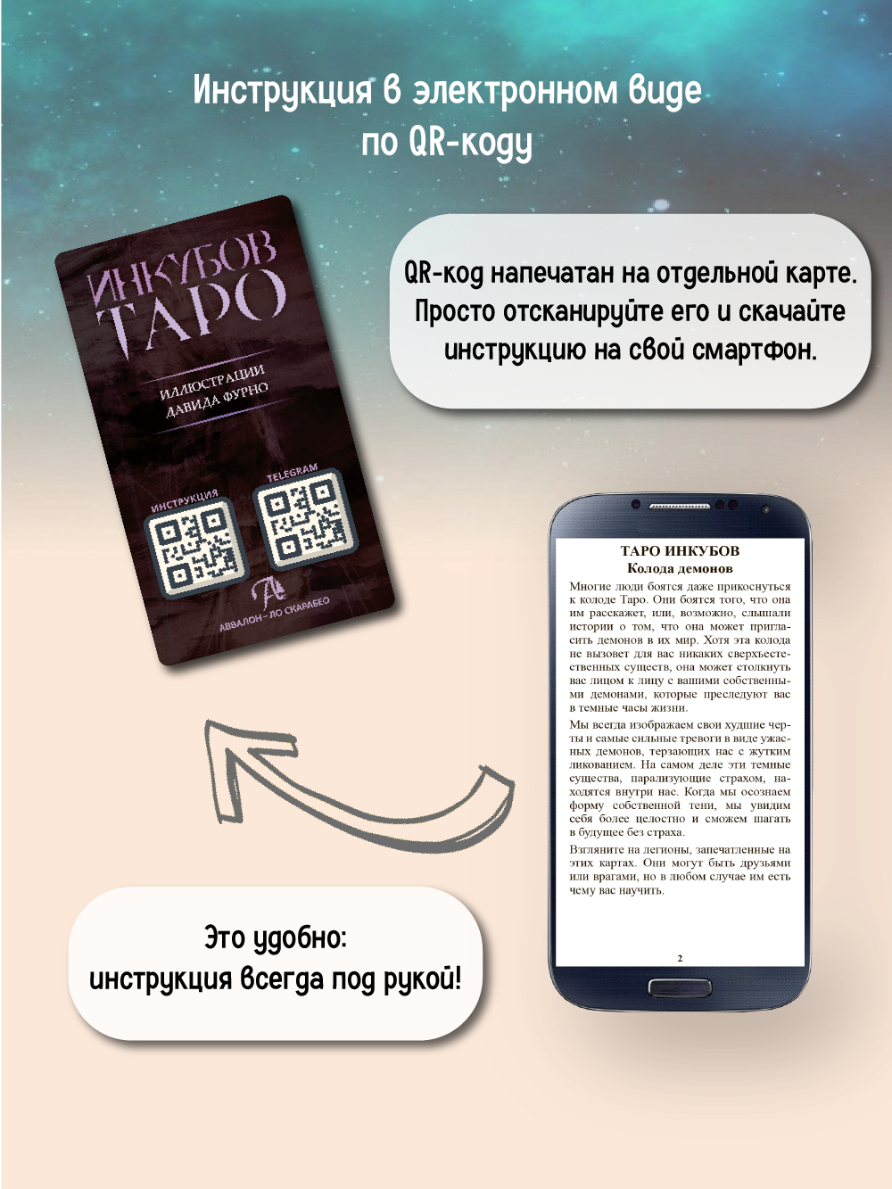 Таро Инкубов Русская Серия Аввалон-Ло Скарабео – это уникальный инструмент для гаданий и предсказаний, созданный на основе работ известного художника Давида Фурно и дополненный подробными инструкциями на русском языке.