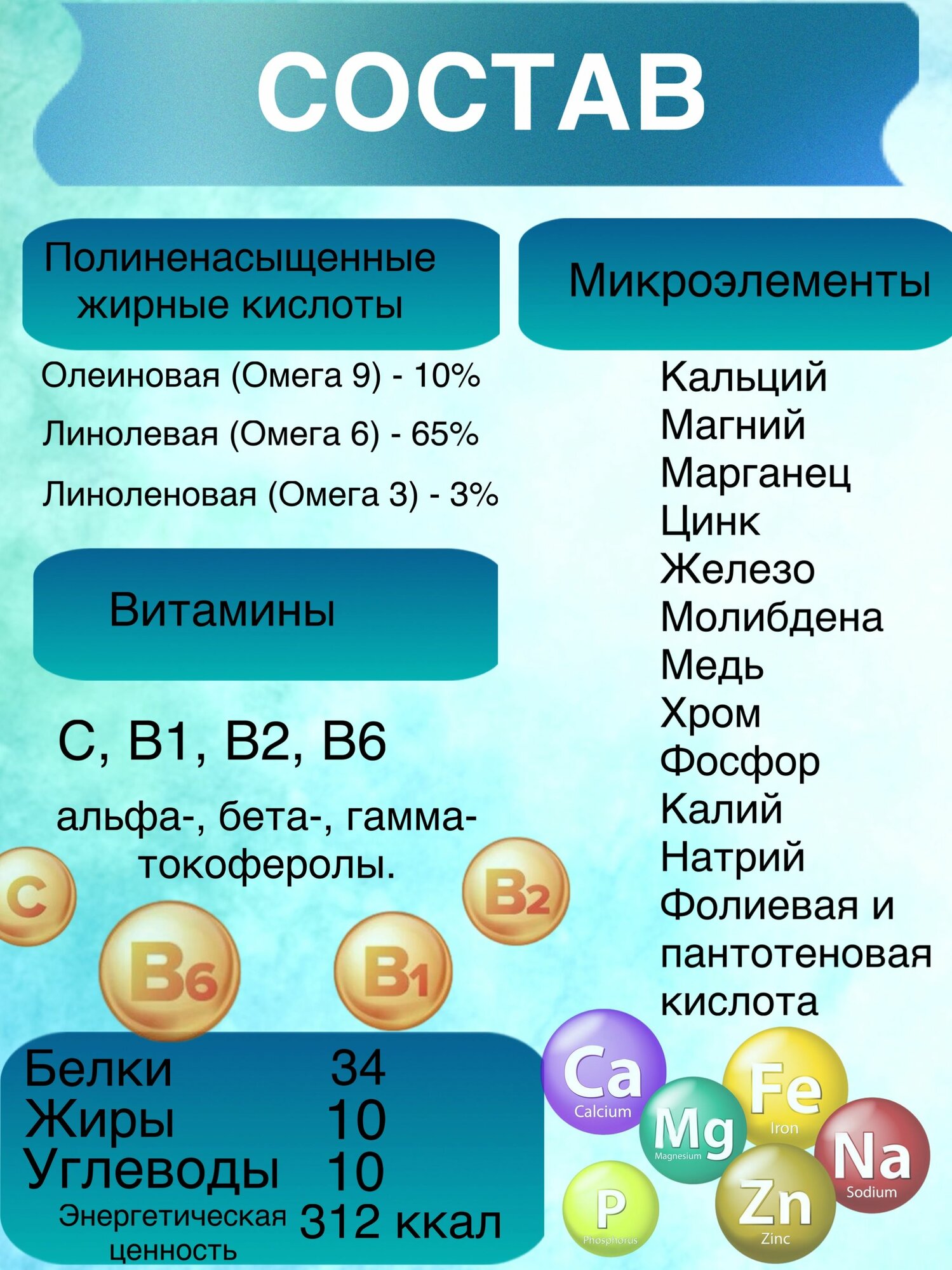- Полезные свойства: Богата Омега-3 жирными кислотами, клетчаткой и витаминами группы B.