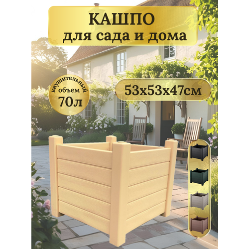 Кашпо для сада Монро, уличных, балконных и комнатных растений, квадратное, сборно-разборное, светло-бежевое 70 л: сравнение цен, характеристики, фото, актуальное наличие и цены.