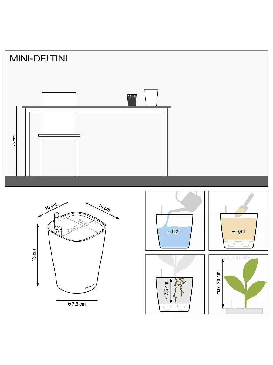 Кашпо с автополивом Lechuza MINI DELTINI Premium, L10 W10 H13 см, серо-коричневое глянцевое / горшок для цветов: сравнение цен, характеристики, фото, актуальное наличие и цены.