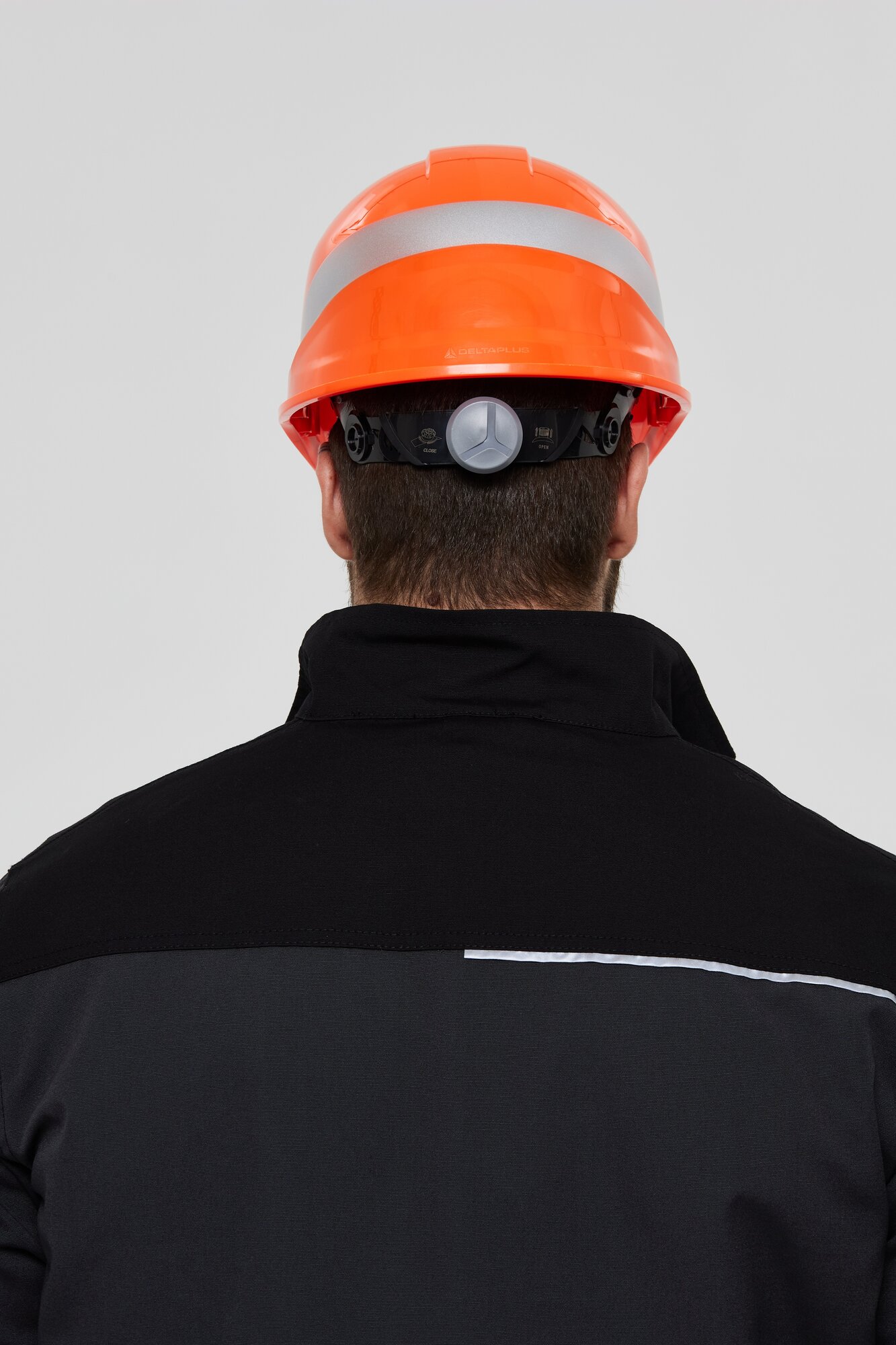 Защитная каска с вентиляцией из термопластика АБС в виде бейсболки с козырьком, Внутренняя оснастка из полиамида: 3 текстильных ремня с 8 точками крепления, Потовпитывающая вставка на лобовой части оголовья, Карманы для крепления очков, наушников, щитков, Регулируется по обхвату головы от 53 до 64 см при помощи системы затяжения ROTOR®, 2 возможных позиции размещения на голове: высокая и низкая, Защита против бокового сжатия, Стойкость к брызгам расплавленного металла, Температурный диапазон применения касок от - 30°C до + 50°C, Вес каски – 400 гр,