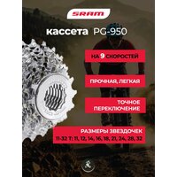 Кассета CS-950-11-32 PG-950 отSram (Срэм / Срам) — идеальный выбор для велосипедистов, которым нужна 9-скоростная трансмиссия для комфортной езды. Кассета сочетает в себе лёгкость, прочность и точность переключения передач.