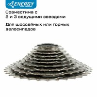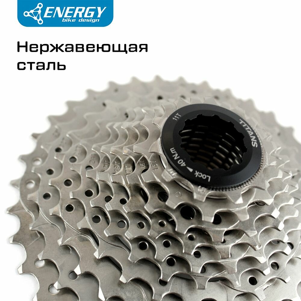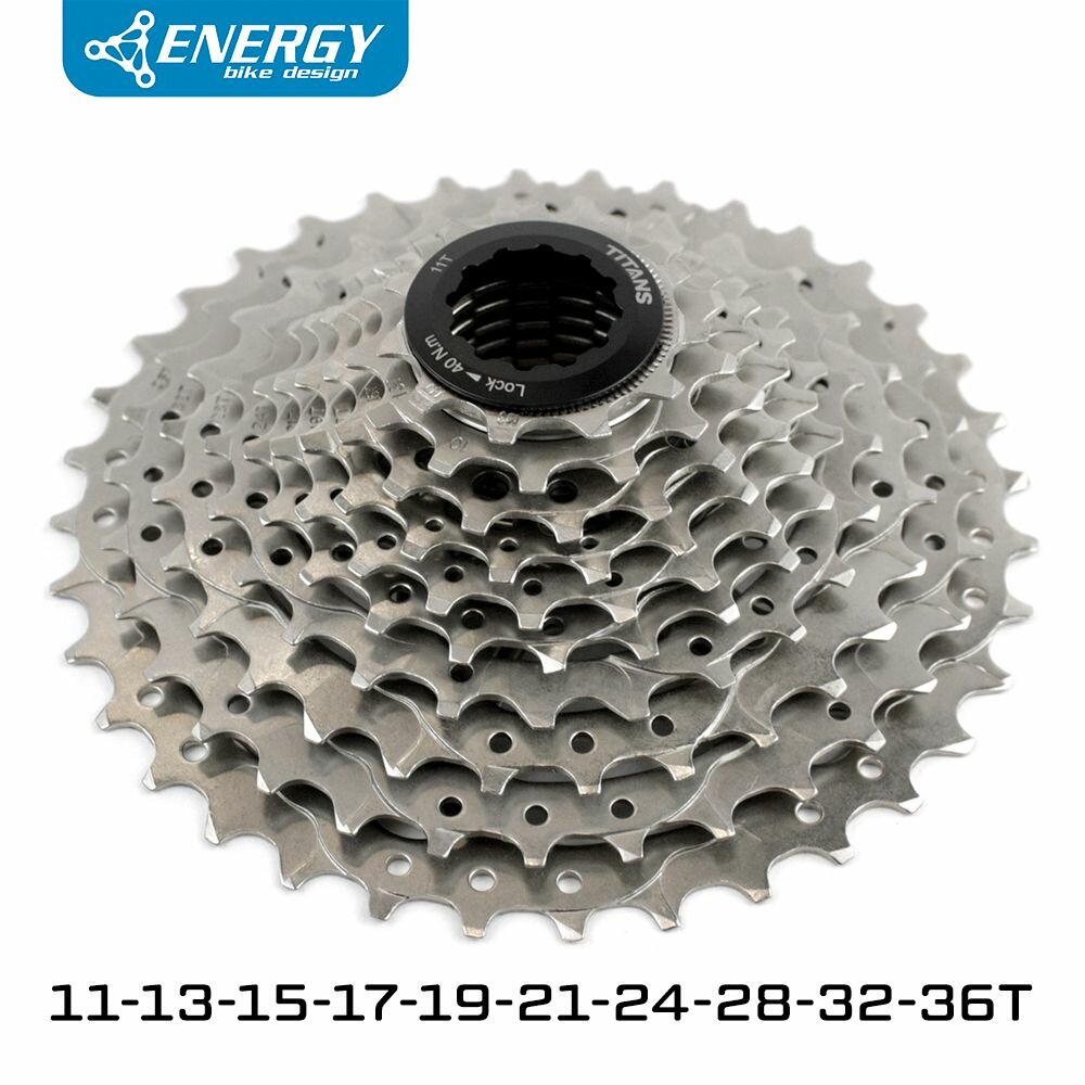 Кассета велосипедная Energy, 10 скоростей, 11-36T, HG Type, стальная. Кассеты Energy серии Titans — настоящие титаны в мире велосипедных трансмиссий! Звезды кассеты сделаны из высокопрочной стали и обладают высокой износостойкостью. Кассета рассчитана на длительное использование, в том числе в условиях повышенного загрязнения. Профиль зубов спроектирован с помощью компьютерного моделирования, а расстояние между звездами идеально откалибровано для максимально четкого переключения.