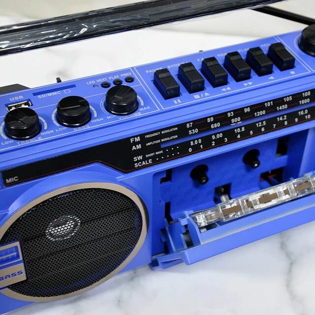 Кассетная магнитола! Сделана в винтажном стиле! Два динамика. Помимо кассет и радио можно прослушать любимые композиции с флешки или карты памяти, а также подключить внешнее устройство по Bluetooth, использовать магнитолу как колонку или записать любимую музыку на кассету. Встроенный микрофон, выход на наушники. У этой модели два динамика, но звук монофонический. Хороший и чистый звук! Регулировка тембров низких и высоких частот!