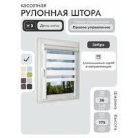 Кассетная рулонная штора 36×175 см, белый день/ночь (зебра), с правым управлением, с алюминиевыми направляющими на пластиковые окна/балкон, с вертикальными направляющими, без сверления, УНИ2: сравнение цен, характеристики, фото, актуальное наличие и цены.
