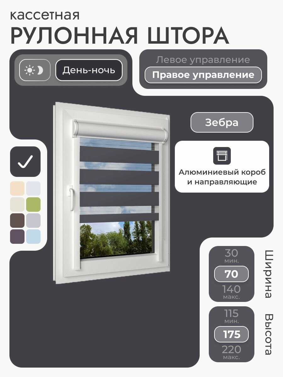 Кассетная рулонная штора 70×175 см, черный день/ночь (зебра), с правым управлением, с алюминиевыми направляющими на пластиковые окна/балкон, с вертикальными направляющими, без сверления, УНИ2: сравнение цен, характеристики, фото, актуальное наличие и цены.
