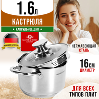 Кастрюля из нержавеющей стали MAYER&BOCH для плиты 1,6 л - отличный выбор для приготовления небольших порций блюд. Благодаря своей металлической конструкции, она равномерно распределяет тепло, что позволяет быстро и эффективно готовить. Кастрюля подходит как для обычной плиты, так и для индукционной. Со стеклянной крышкой вы сможете контролировать процесс готовки без необходимости поднимать крышку и терять тепло, она также имеет клапан выпуска пара. Кастрюля оснащена отверстием для слива жидкости и внутренней градуировкой. Кастрюля из нержавеющей стали станет отличным подарком женщине, маме, подруге, бабушке. Ее компактный размер позволяет хранить ее в небольших кухонных шкафчиках, а ее надежность и долговечность гарантирует, что кастрюля прослужит долгие годы.