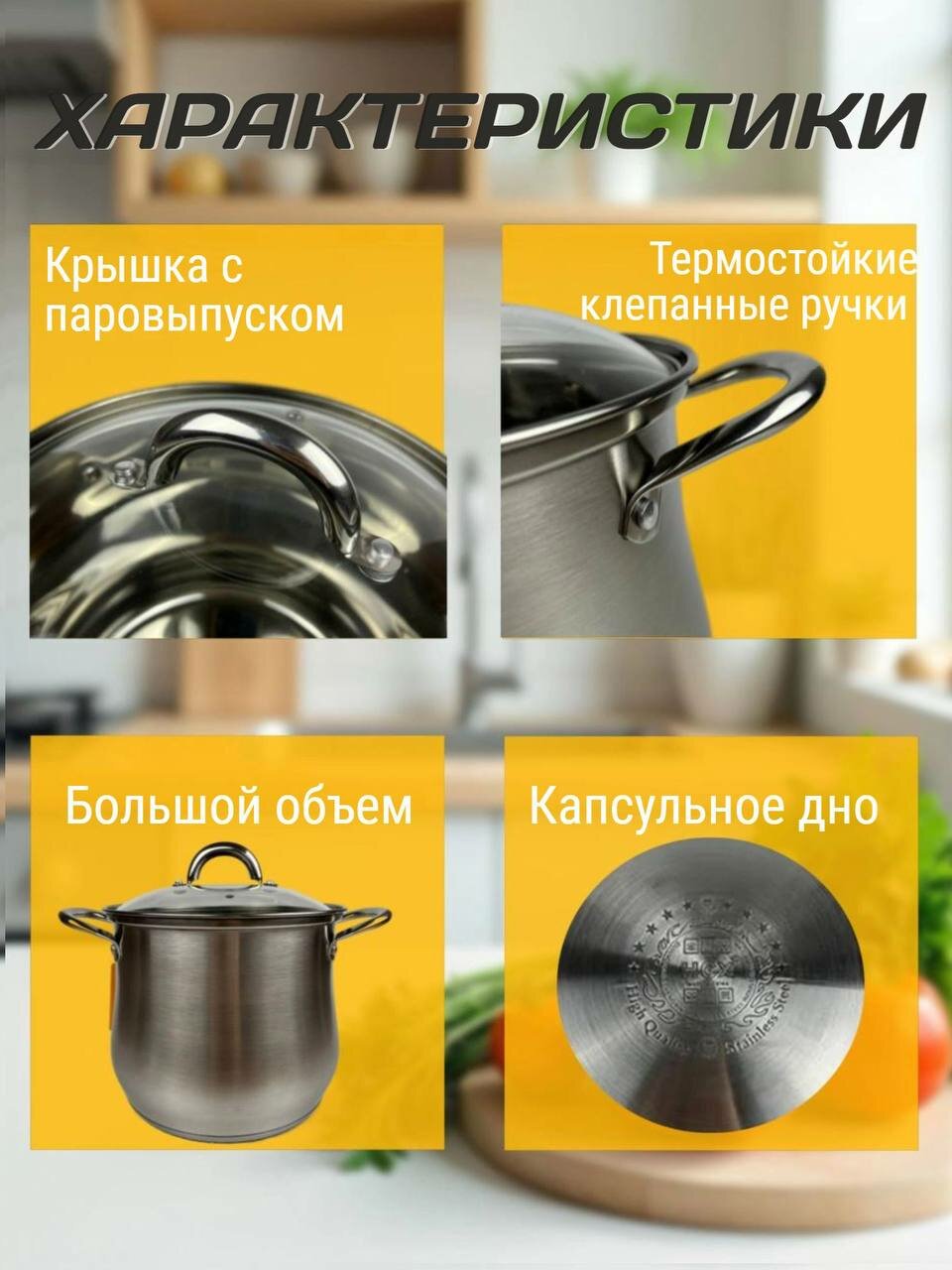 Кастрюля 10 л Восток Стиль, нержавеющая сталь, для индукции с крышкой: сравнение цен, характеристики, фото, актуальное наличие и цены.