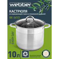 Купить Кастрюля 10 литров, 24×21 см, из нержавеющей стали со стеклянной крышкой WEBBER BE-367/2 с доставкой по всей России.